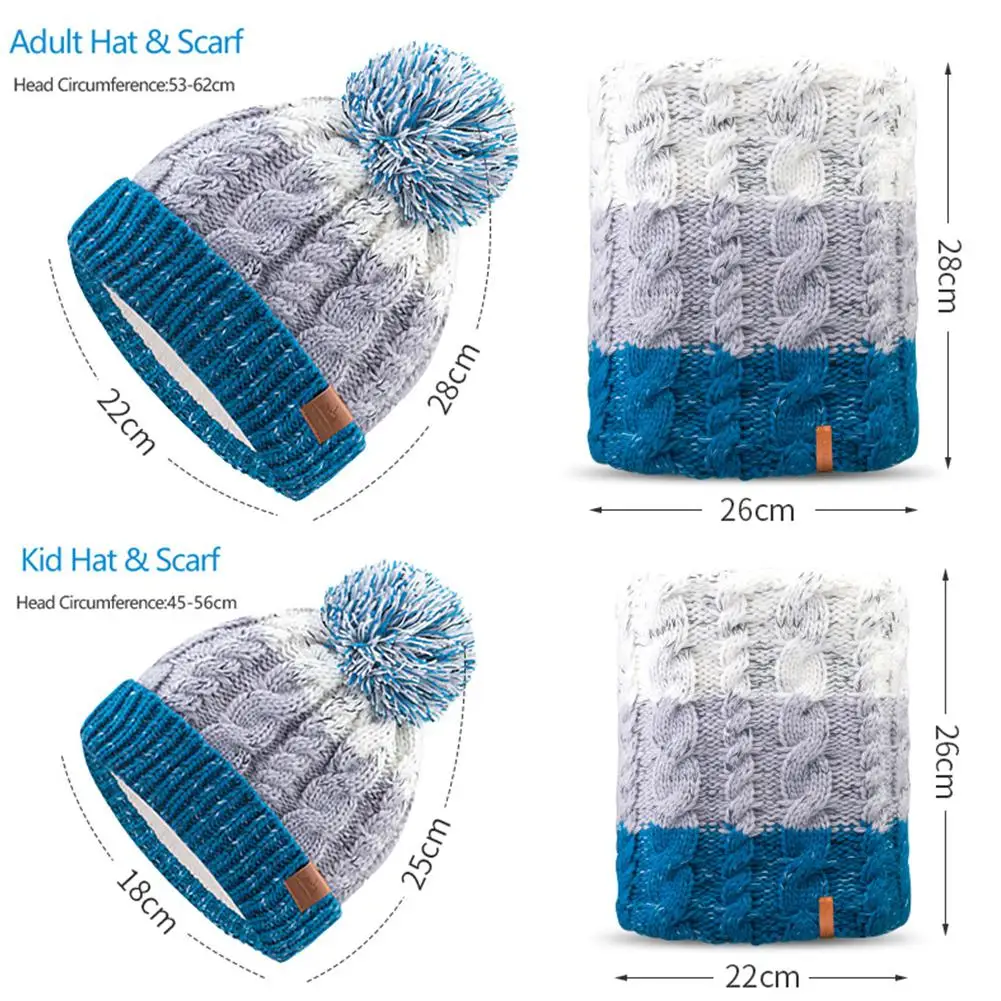 Adult Children Knitted Hat Fleece Scarves Set On For Running Skiing Snowboarding Winter Warm Thicke