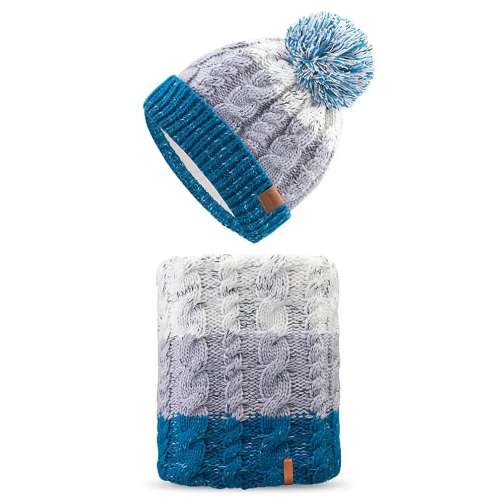 Best Adult Children Knitted Hat Fleece Scarves Set On For Running Skiing Snowboarding Winter Warm Thicke